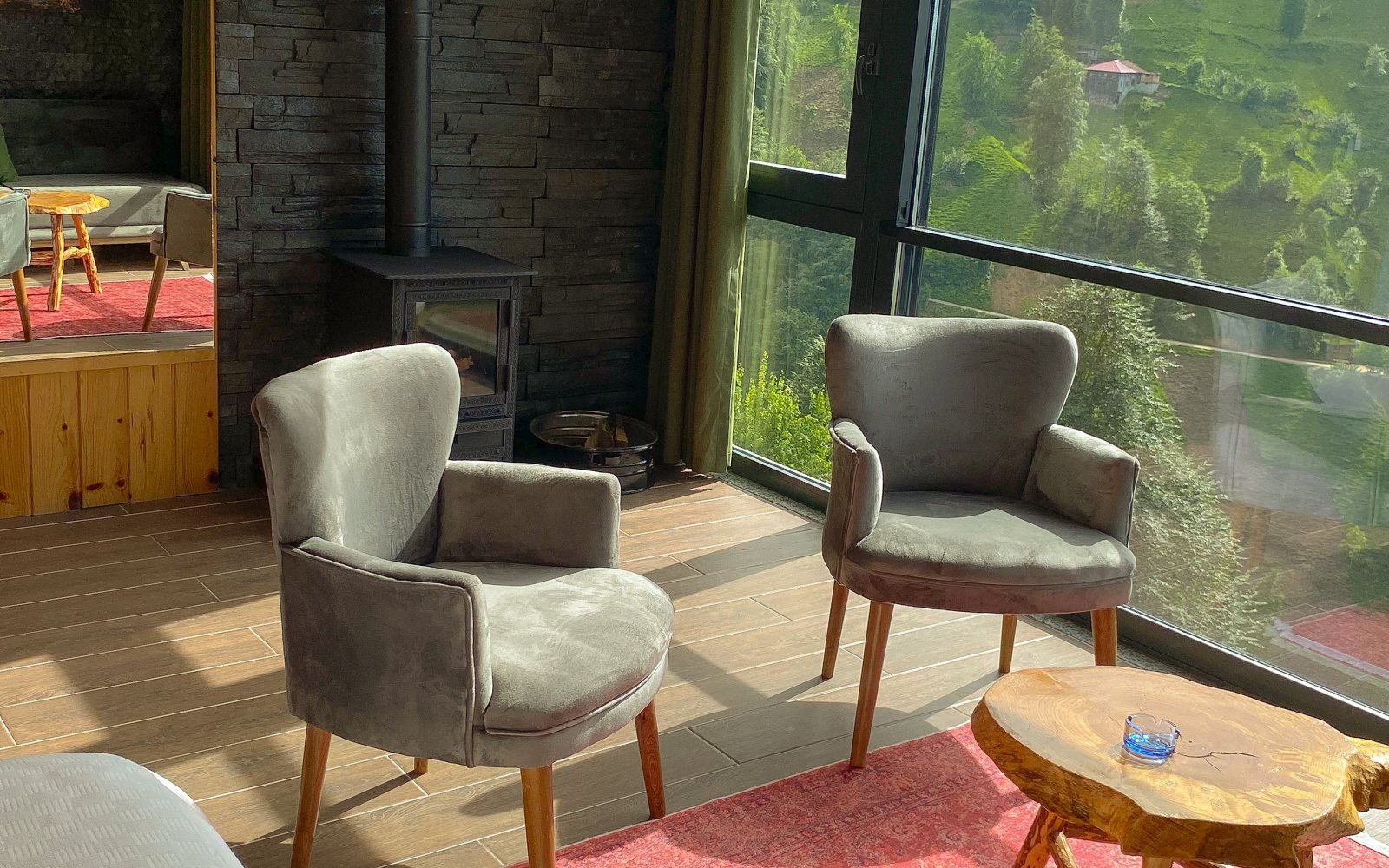Açılabilir giyotin pencereler, odanıza taze hava ve vadi manzarasınıtaşır; doğayla bütünleşen sade bir şıklık hissi