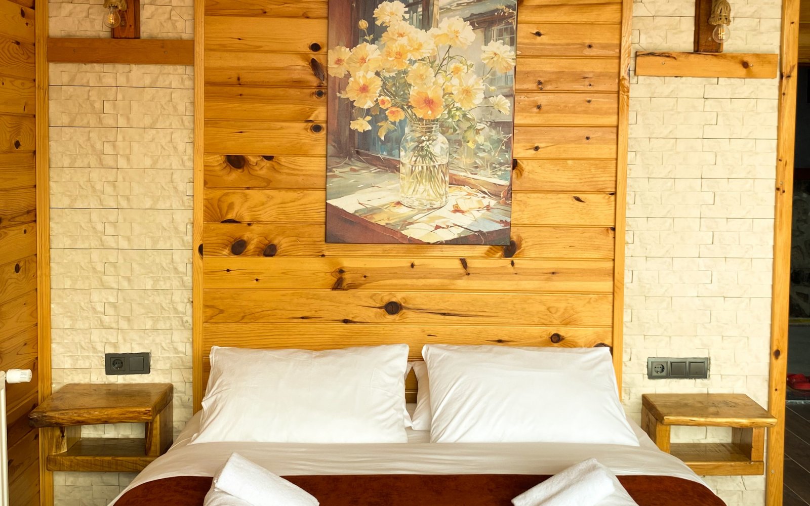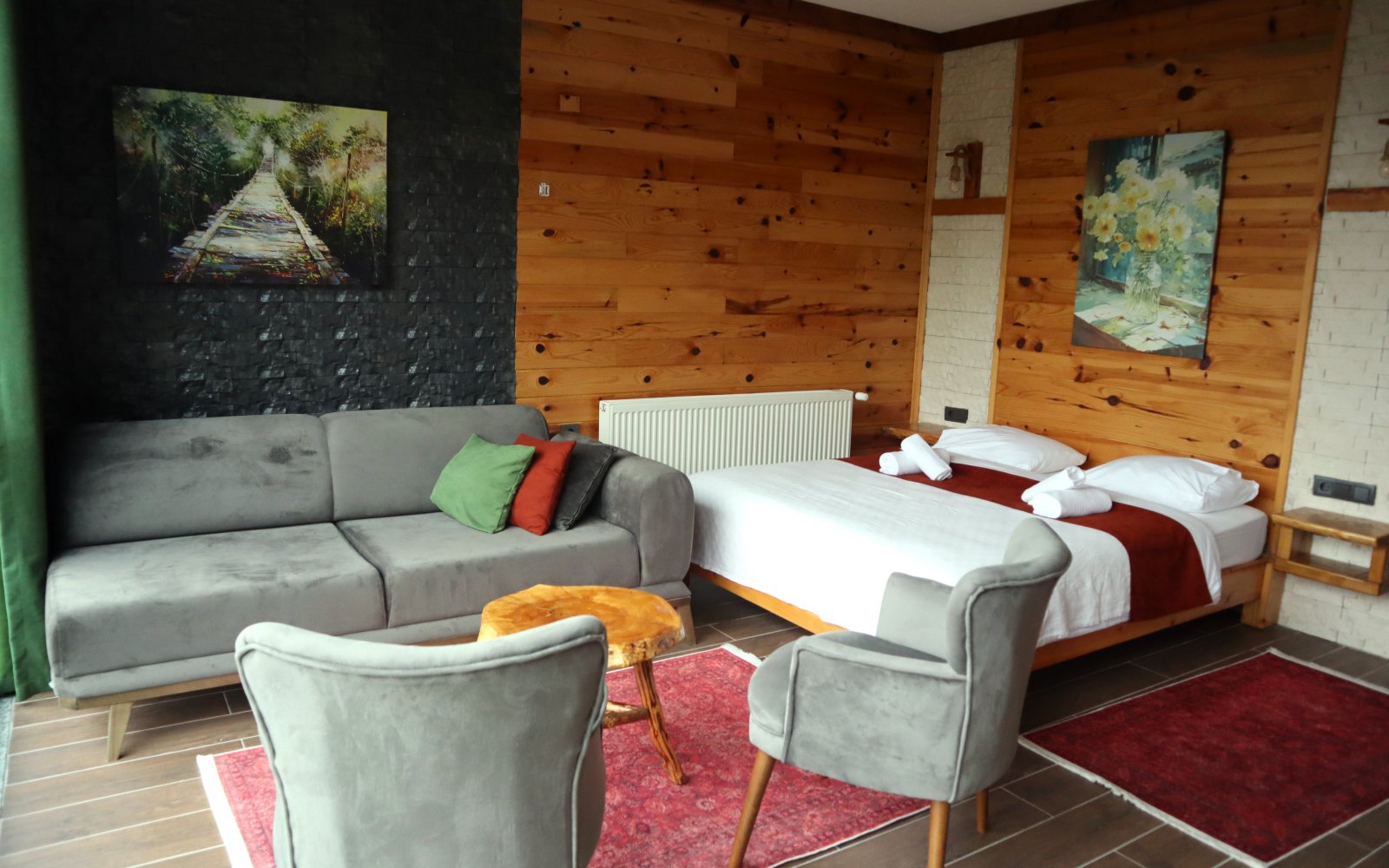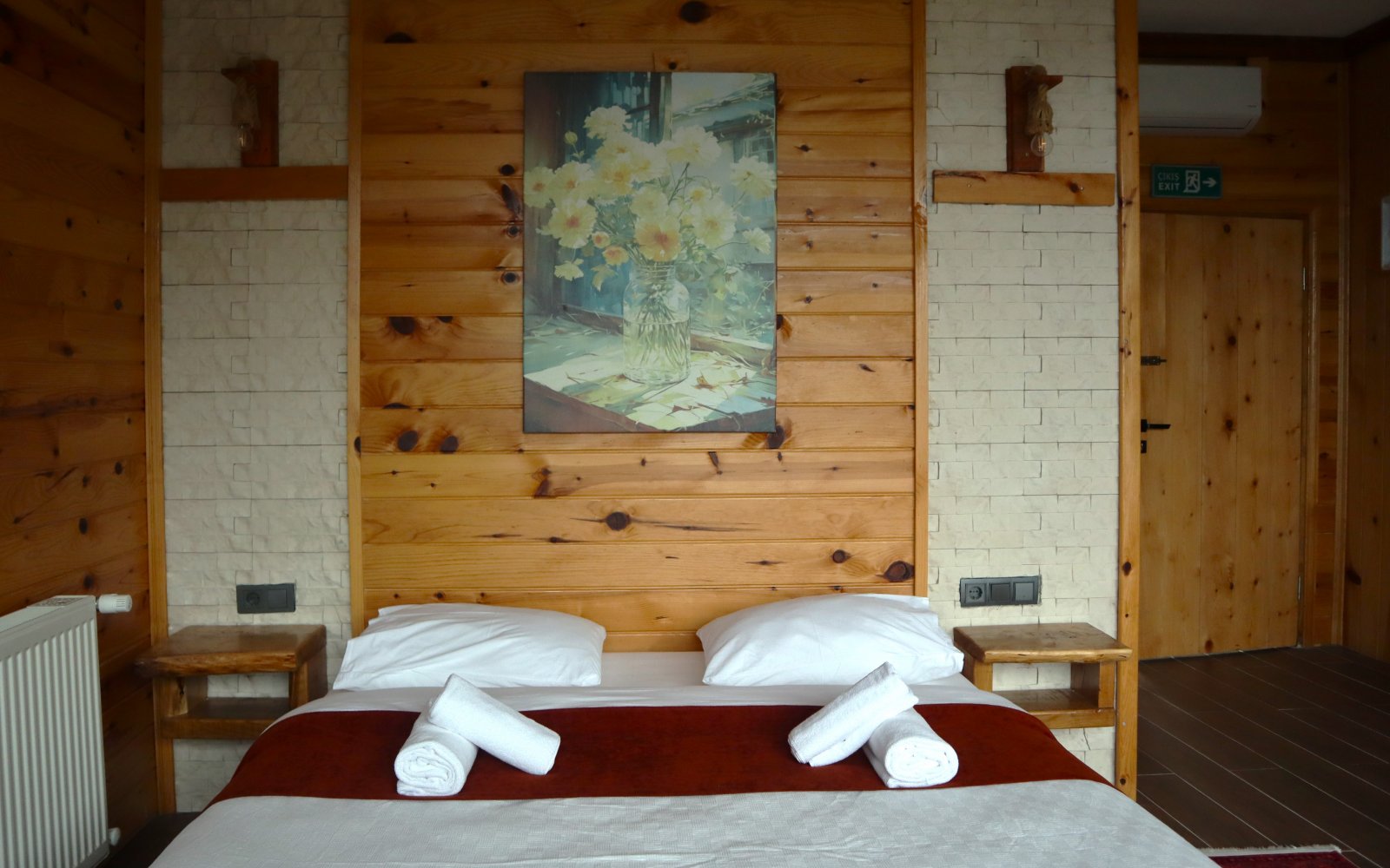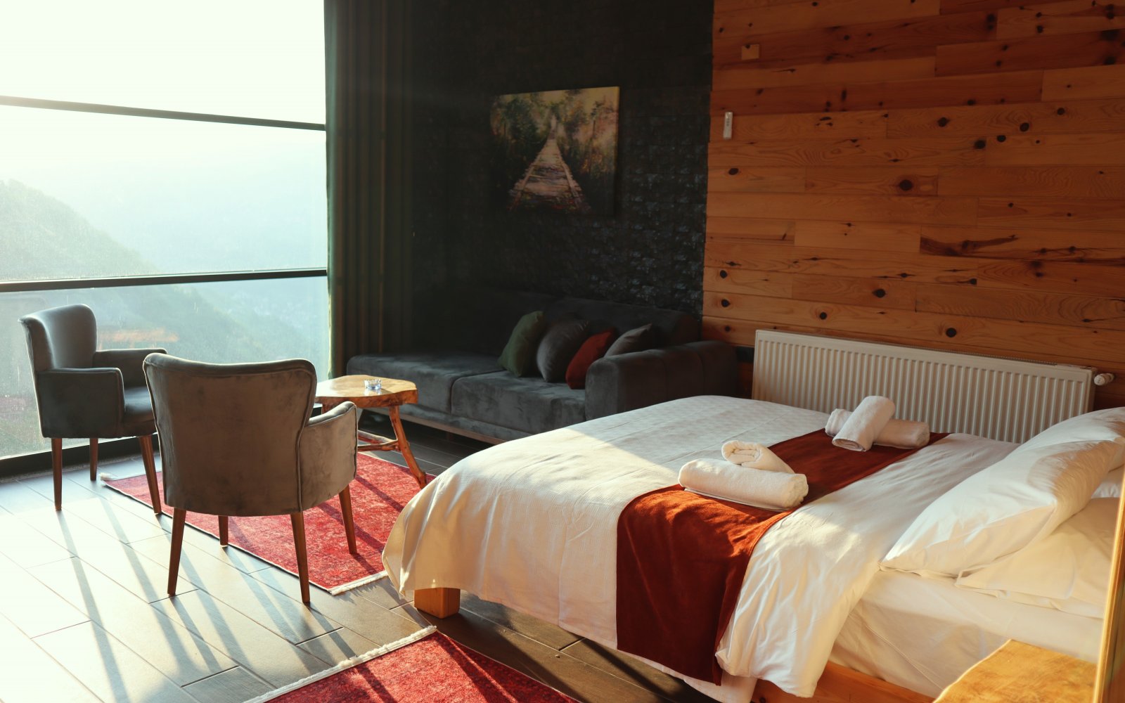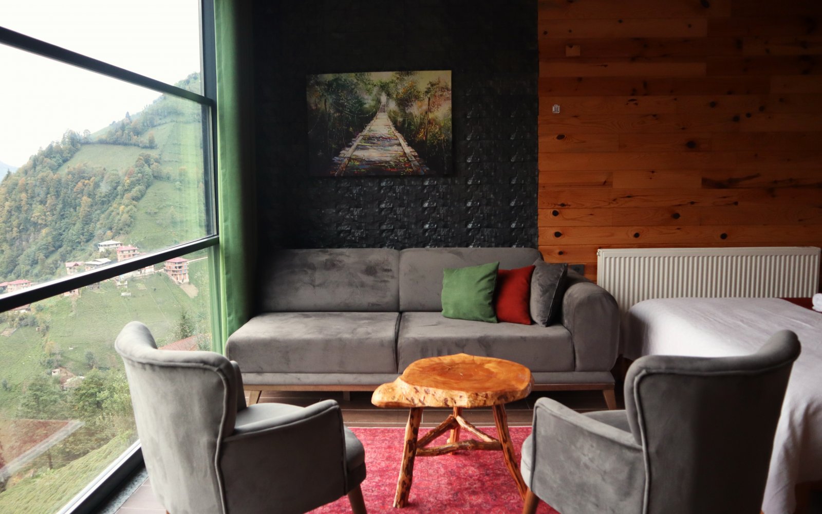 Açılabilir giyotin pencereler, odanıza taze hava ve vadi manzarasınıtaşır; doğayla bütünleşen sade bir şıklık hissi